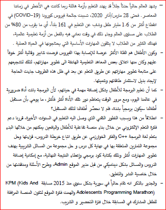 | موقع تعليمي برمجي للأطفال واليافعين |