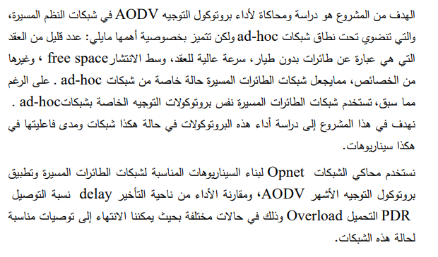 | في شبكات النظم المسيرة ADOV دراسة اداء بروتكول التوجيه |